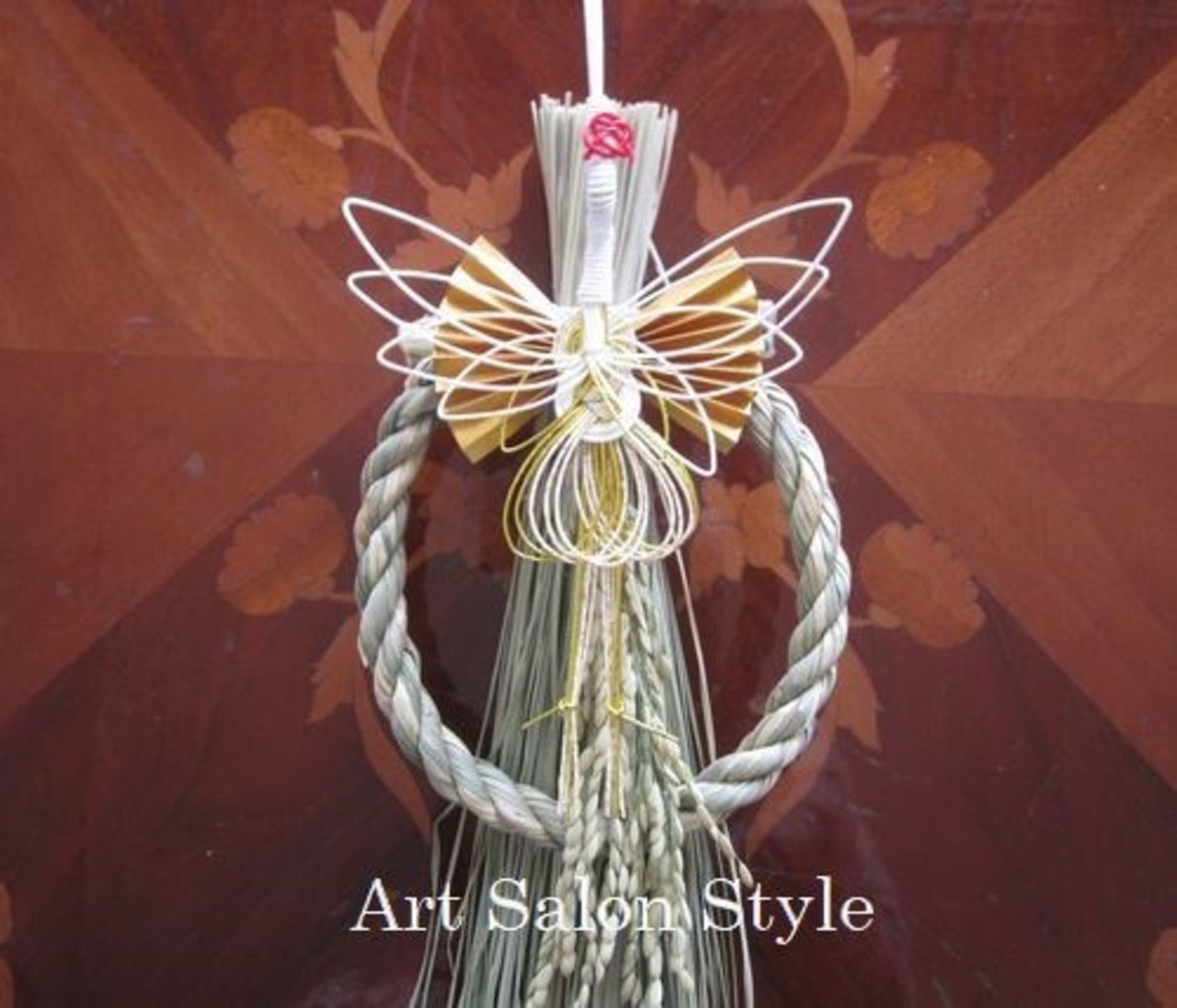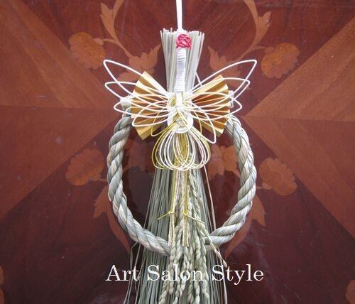輪流しのしめ縄に翔鶴、稲穂と扇シンプルな新年を祝うしめ縄飾りをお作りしました。